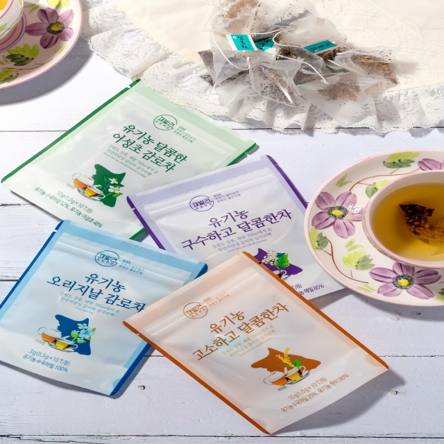 유기농 감로차와 현미와블랜딩된 고소하고달콤한차 메밀과 블랜딩된 구수하고달콤한차 어성초와 브랜딩된 달콤한어성초차 를 맛볼수잇습니다.